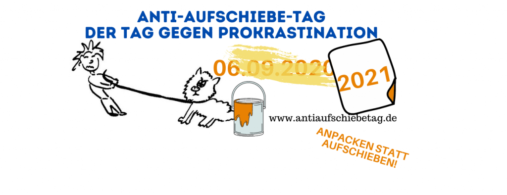 Möchtest du auf jeden Fall (wieder) beim Anti-Aufschiebe-Tag 2021 dabei sein und auch informiert werden, wenn es zwischendurch wieder eine Aktion zum Thema Weniger-Aufschieben gibt? Dann trag dich gleich hier ein: