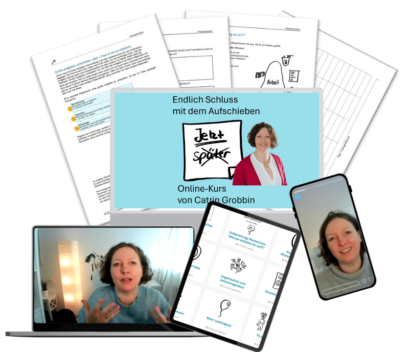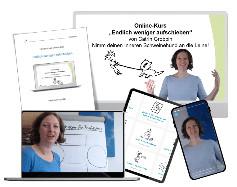 Endlich weniger Aufschieben! ist der Einsteiger-Kurs gegen das Aufschieben. Für kleines Geld bekommst du einen guten Überblick über die wichtigsten Themen.